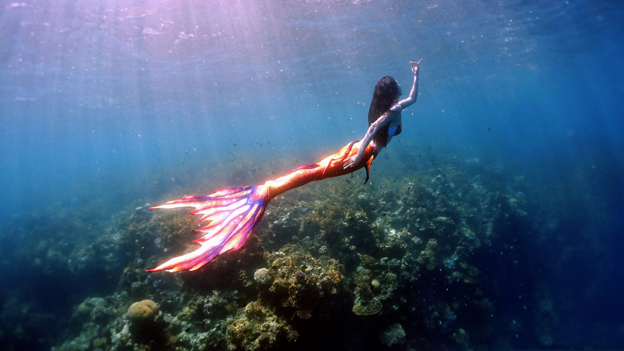 我想很多人都和我一样,看着美人鱼的童话长大。作为一个花样游泳运动员,13岁时我顺利拿到了“小美人鱼大赛”的冠军,从此,“小美人鱼”成了我的一个昵称。我相信每个人甚至是男生,都对美人鱼这种童话里的生物,保留着心中的一丝期待,就好比,成为美人鱼其实是我从小打到的梦想。后来的我,不断地训练,训练自己游动的姿态,在16年成为了周星驰导演电影《美人鱼》女主角的水下替身和水下特技演员,次年拿到了国际潜水小姐大赛中国区冠军并成为了国际赛的海洋环保推广大使,现在是一名美人鱼教练训练官,完成了我美人鱼的梦想。