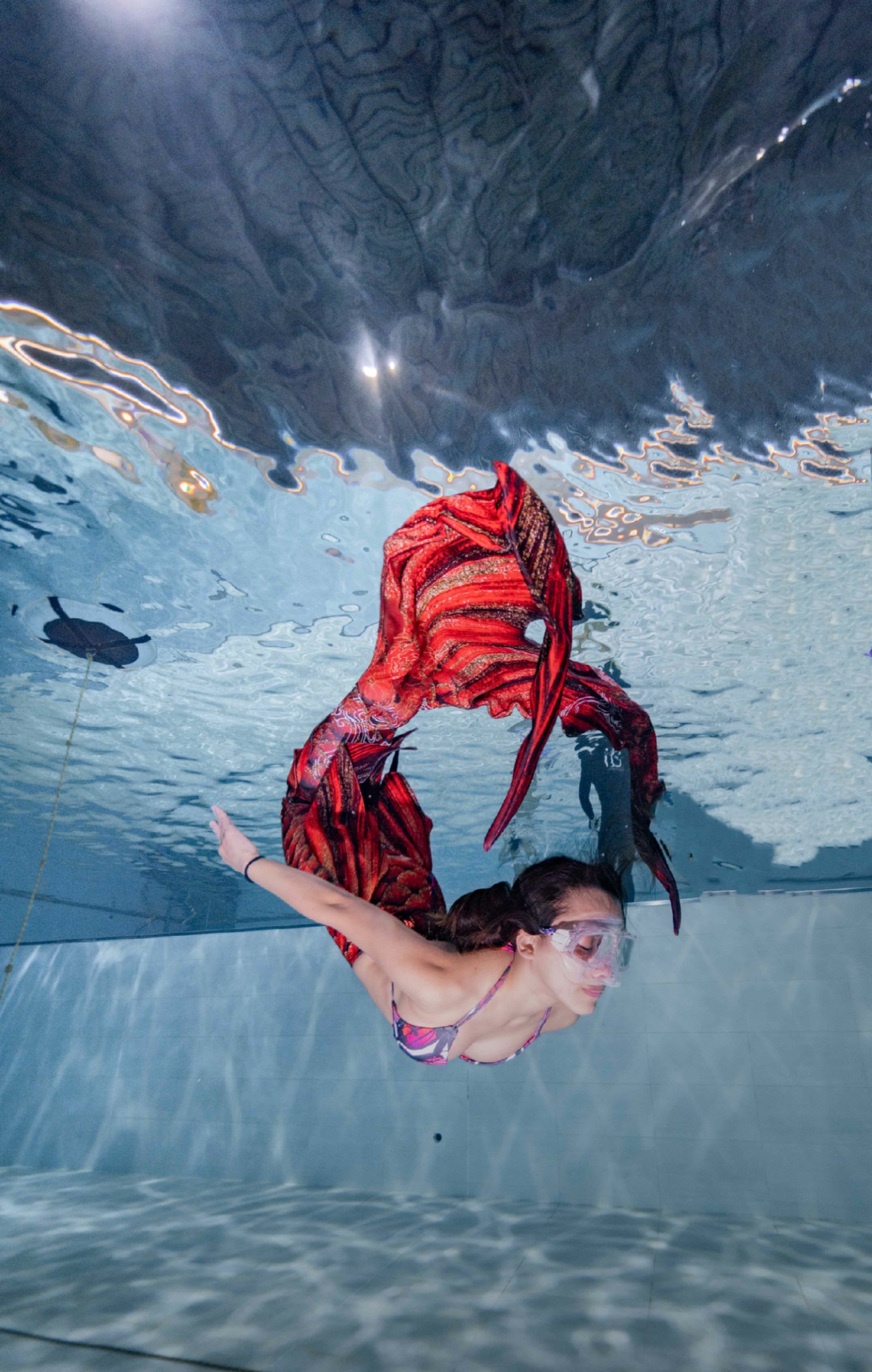 我的人魚歷程一開始其實不太順利,在2019年中就開始找,但可能因為管道不多,那時候透過臉書.IG.網頁搜尋能上到人魚課程只有跑出墾丁的,但實在是太遠,後來過了一年才讓我發現MFI的系統,剛好潛力方又在台中,非常的近!!所以立刻報名上了我的第一堂人魚課程並拿到了MF1!後來很幸運有機會參加了兩次海科館的人魚表演 ,在表演的那一刻發現我真的非常熱愛扮演人魚時候的感受,真的非常享受那個表演的過程,那一刻我是真的很快樂很開心,感覺就是為海洋而生,所以下定決心要來考教練