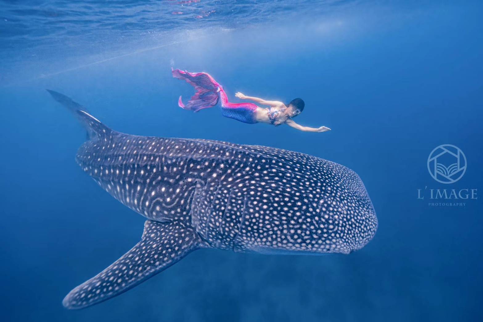 了水肺潛水,開啟了我與海洋的邂逅,發現它真的是比我想像中還要美麗,希望自己以後可以到世界各地去潛水去探索,而最想在海裡遇到的生物就是海豚和鯨鯊,好想要跟牠們一起在海裡悠游,跟牠們一起拍照,自己同時也上網看了很多照片,發現國外竟然有人在玩人魚活動,那時台灣還沒有人魚教學,所以超級羨慕外國人的,還好最後在2018年發現了MFI有在教授人魚課程,二話不說直接報名學習,並在2020年達到好久之前的夢想,就是人魚與鯨鯊同框同游,謝謝攝影師幫我捕捉到這珍貴的畫面!但學完了人魚才發現這